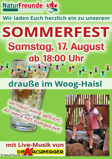 Sommerfest der NaturFreunde Neuhofen mit Musik der Gruppe "Kirchberger" ab 18 Uhr (auf Bild klicken für komplette Ansicht).