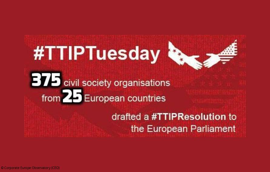 375 zivilgesellschaftliche Organisationen aus ganz Europa haben einen offenen Brief der Organisation Corporate Europe Observatory (CEO) unterschrieben, in dem die EU-Parlamentarier aufgefordert werden, Bürger und Umwelt vor den Gefahren des Transatlantic Trade and Investment Partnership (TTIP) zu schützen. Zu den Unterzeichnern gehören auch die NaturFreunde Deutschlands und die Naturfreunde Internationale.