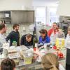 Nach ersten Erklärungen zu veganen Produkten und Alternativen hieß es für die zwölf Teilnehmer „ran an die Töpfe“. Eingeteilt in kleine Gruppen und ausgestattet mit den veganen Rezepten wurde mit der Zubereitung der jeweiligen Gerichte begonnen, wie beispielsweise gefüllte Paprika mit Joghurtdip, Kesselgulasch mit Sojafleisch, Chiliburger oder Wraps mit Quinoafüllung – alles selbstverständlich vegan.